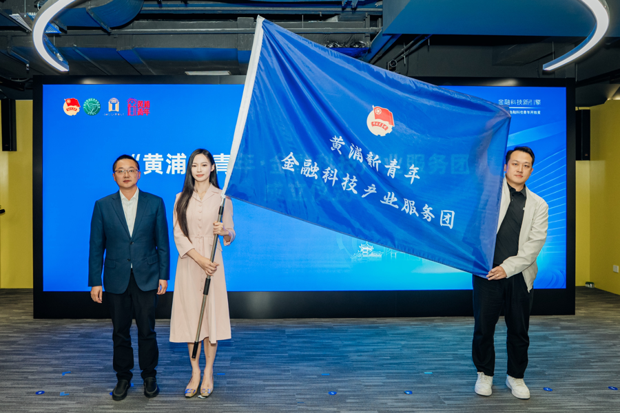 活动现场,“黄浦新青年·金融科技产业服务团”成立,服务团成员接受了聘书与旗帜,未来这些专业力量将致力于服务区域金融科技产业发展。